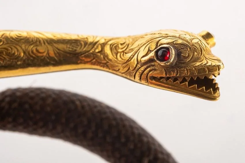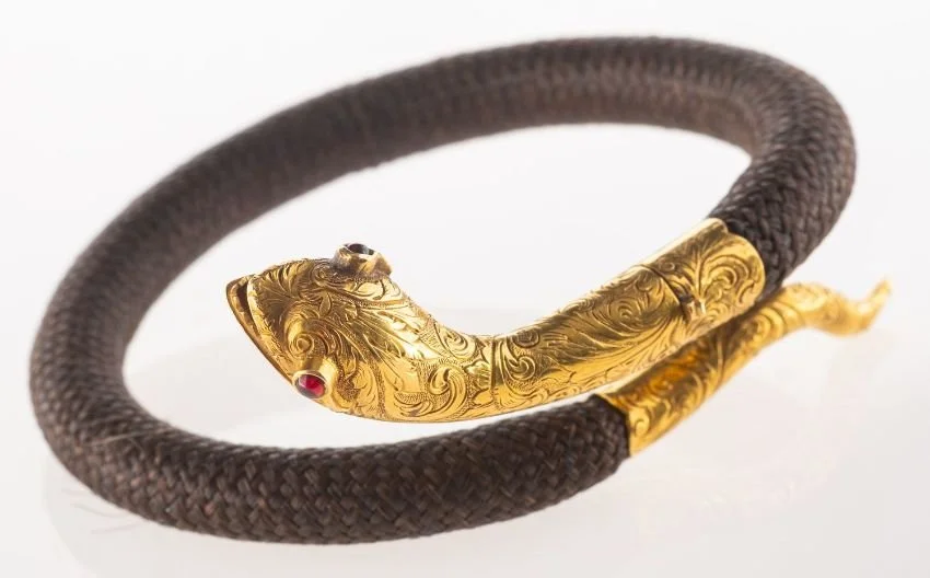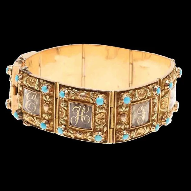 Romantic museum-quality hairwork designs with ornate gold and secret messages
