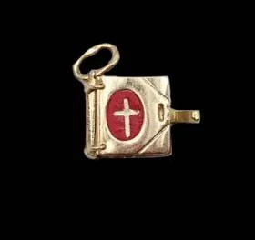 Miniature book pendants such as this were often worn as personal talismans, combining prayer, protection, and remembrance in a portable form. Their small scale belies their spiritual significance; they served as private companions in daily life rather than overt displays of piety. Surviving examples with intact hinges, legible interior texts, and original enamel are increasingly scarce. This pendant exemplifies the intersection of faith, craftsmanship, and personal devotion, reflecting a period when religious belief was expressed through objects designed to be both worn and quietly contemplated.